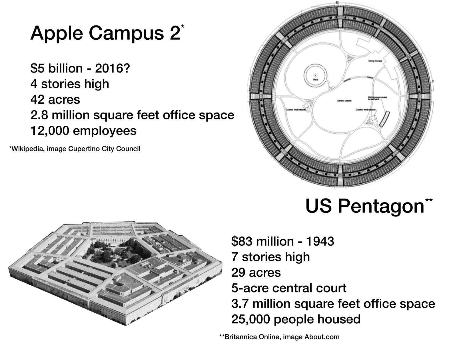 Did you know that the new Apple Campus 2 “spaceship” is wider across than the Empire State Building is tall? It’s going to cost 60 times more than the Pentagon did back in 1943, too. Heck, you’ll be able to cram up to 35 jetliners full of passengers in its rounded confines without breaking a sweat.