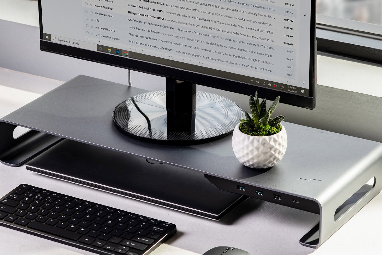 This sleek monitor riser also packs a little something extra: a built-in, eight-port docking hub for charging, data transfers, extra monitors and more. And for a limited time, instead of paying the $199.99 list price, you can get this monitor riser on sale for just $129.99 with code POWER20.