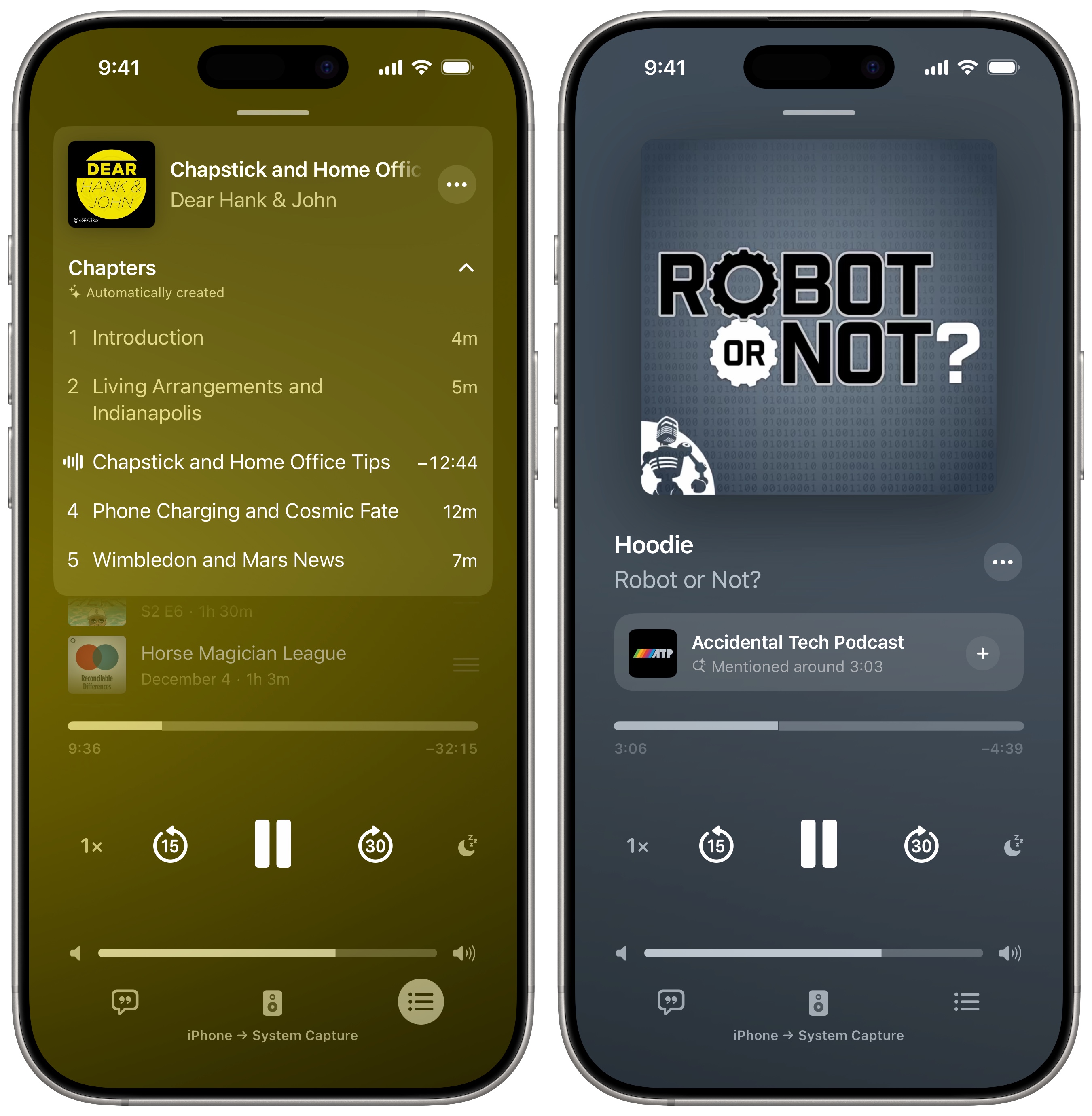 In my testing with Dear Hank and John, a podcast that typically consists of an intro, five or six listener questions, and a closing segment, the Podcasts app incorrectly grouped several of the questions together. However, I can see this feature being useful if it lets you skip a section of a podcast that you’re not interested in.