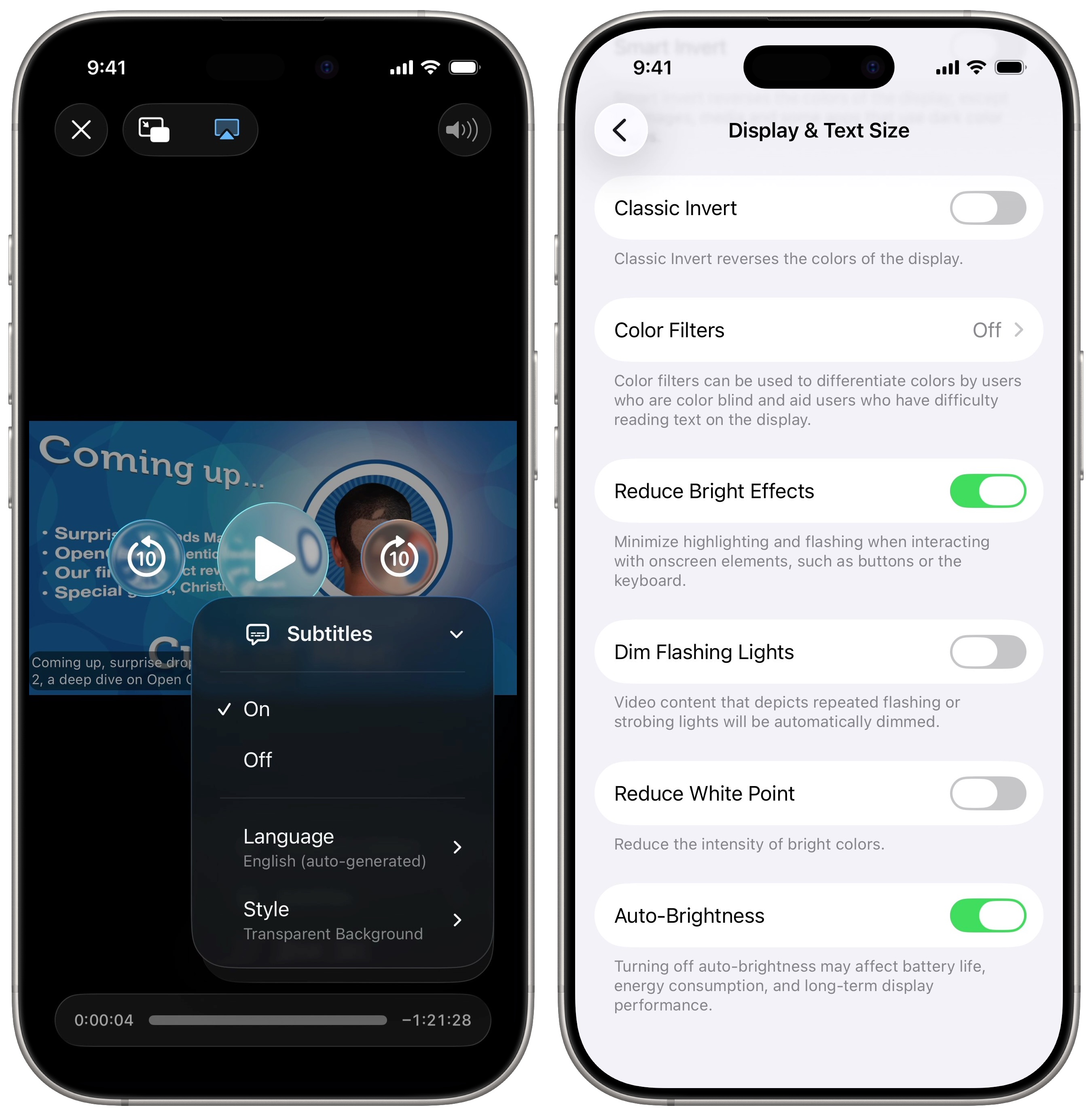 - A new Reduce Bright Effects setting minimizes “highlighting and flashing when interacting with onscreen elements, such as buttons or the keyboard.” Enabling this setting can make things easier on the eyes.
