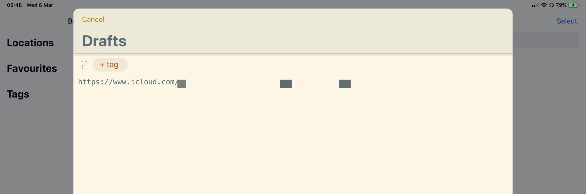 In this example, I’m going to tap on a Pages document stored in iCloud Drive and, with a few more taps, save its link into the Drafts app. You could also save it directly into a task in your to-do app of choice. (I would have done that for this post, but I would have had to redact everything else on the page, which would have made for some really ugly screenshots. Who says I never think of you?)