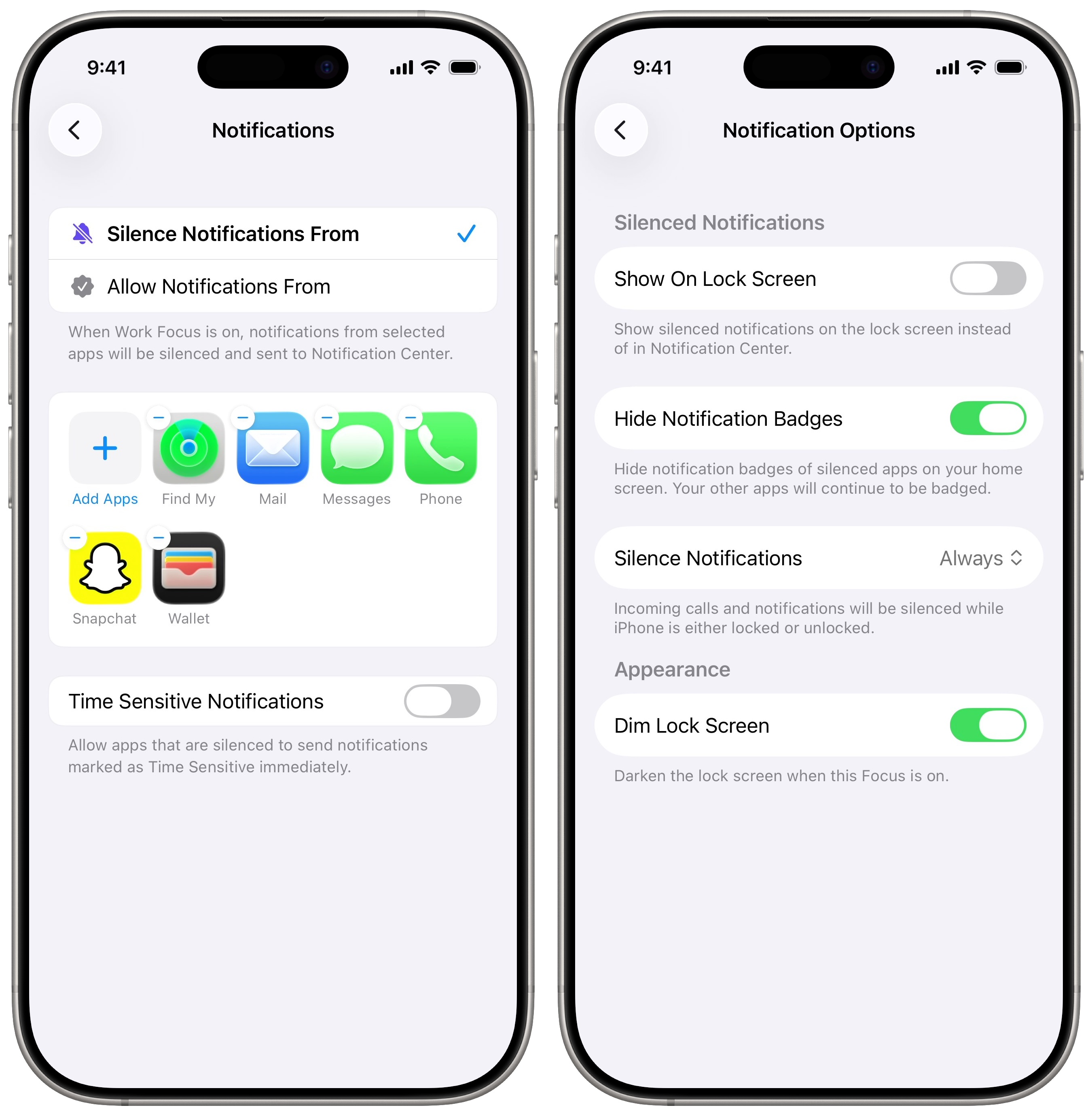 For my Writing Focus and Driving Focus modes, I silenced all contacts and apps save for a few exceptions.