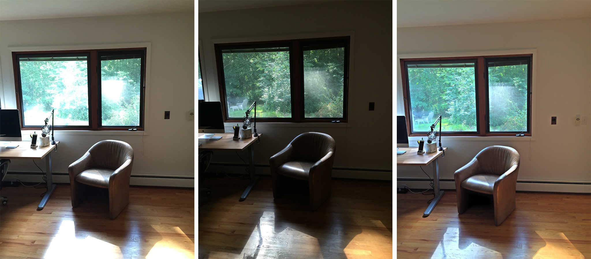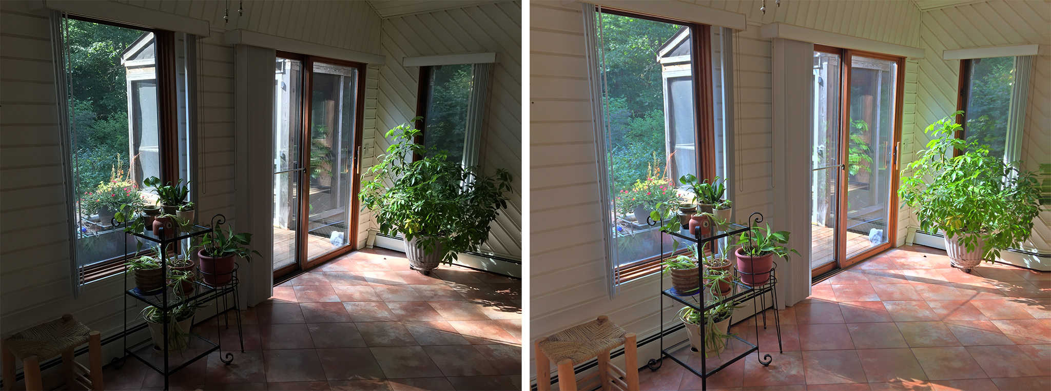 In the above sequence of images, I tried twice to balance the built-in Camera app, which are the two photos to the left. The right photo was taken by Hydra in only one attempt. The windows aren’t blown out and the foreground is balanced.
