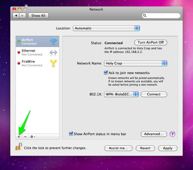 You’ll also need to set up a USB Connection in the Network pane of System Preferences. To do this, just add a connection by clicking the plus sign at the bottom left of the Network Preferences window.