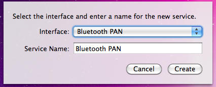 You can also tether to your iPhone using a Bluetooth connection. The steps to set up this connection are similar to tethering with USB. First, turn on the USB Bluetooth Tethering switch in MyWi and make sure your Bluetooth is turned on for both your phone and notebook. You must create a Bluetooth network connection through the network preference pane in System Preferences. Click the add button in the bottom left corner of the Network pref pane to add Bluetooth as a connection option.