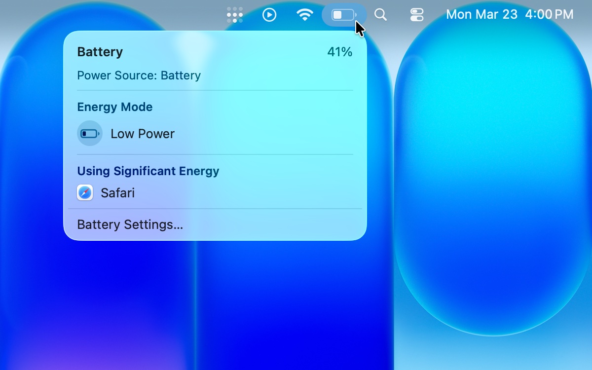 Your MacBook comes with a Low Power Mode, just like your iPhone and iPad. It reduces performance, but extends your battery life. If you’re not doing intense work like cinematic color correcting or building random forests of protein folding data, you’ll probably benefit from Low Power Mode without noticing anything. An Apple silicon Mac is fast enough that Low Power Mode won’t make much of an impact on your work.