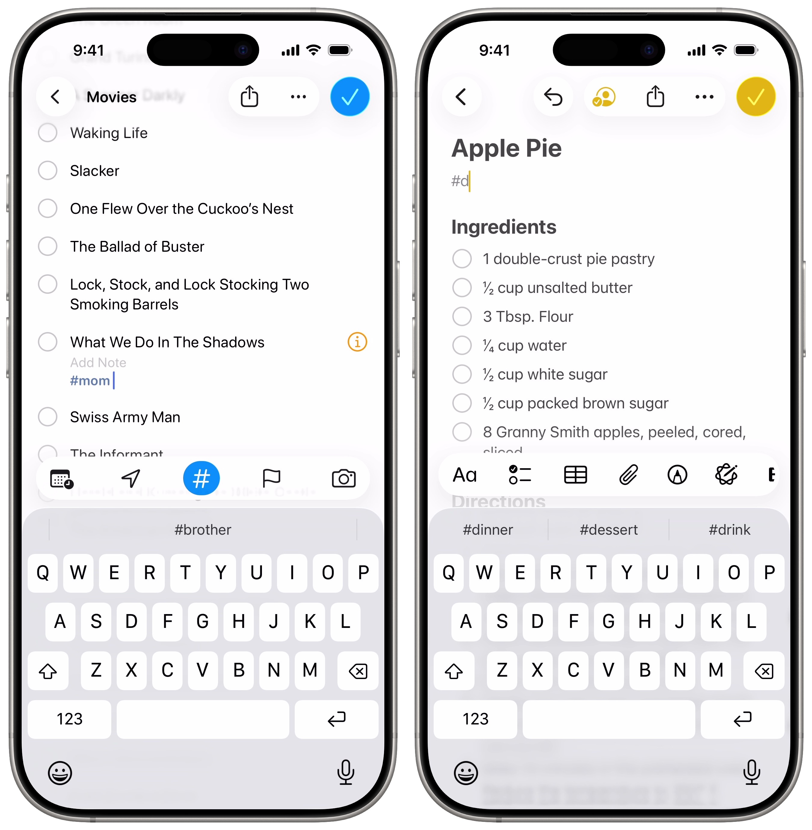 Tagging an item in Reminders is simple. Tap the Tag (#) button to add tags. Try to keep them to one word. It’ll autocomplete tags you’ve entered before to make it easy.