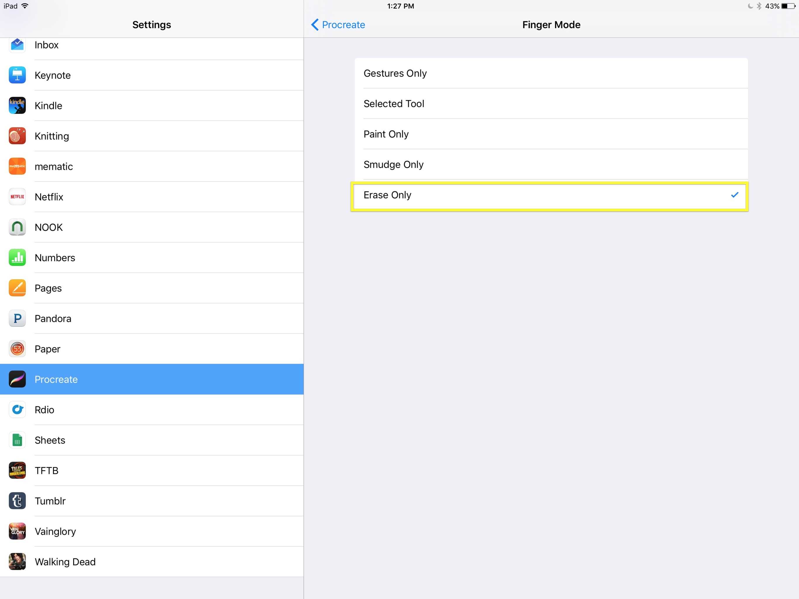 Luckily, if you’re using an app like Savage Interactive’s Procreate, you can tweak things to make your finger do the magic eraser job.