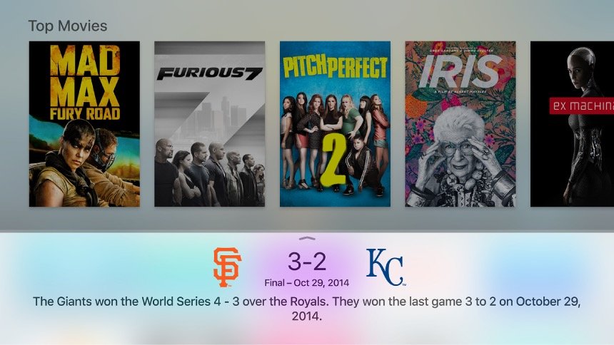 If you request something specific, Apple TV will go right to the detail page for that video. If your request is more general or there’s more than one result, you’ll see a row of search results to choose from. You can refine your search right there, telling Siri, “Just show me the ones from this year,” or “Only the dramas,” or “Just the best ones.”