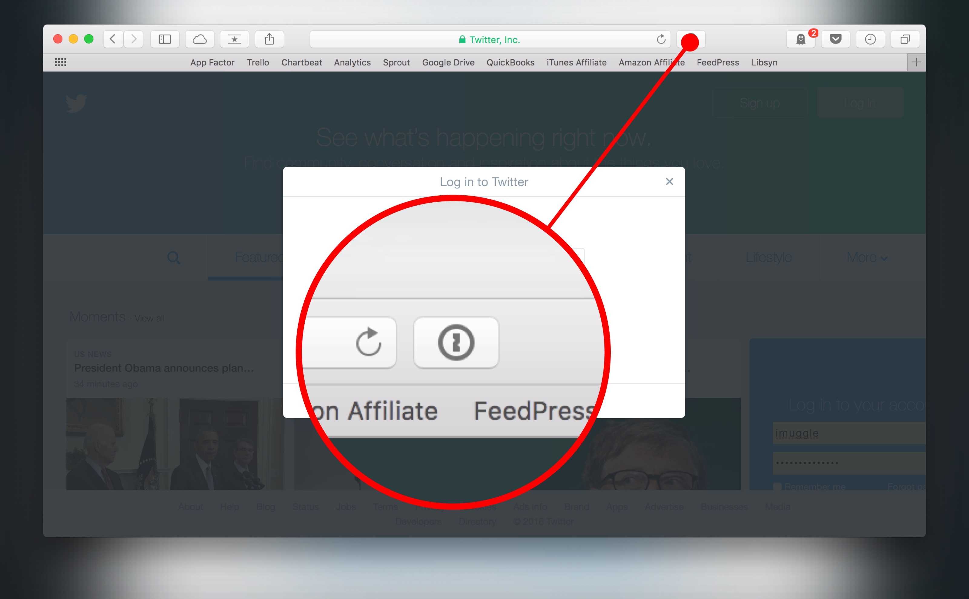I just click the keyhole icon in the address bar and I get all my options. If the right password doesn’t show, just search for it! Keep in mind, if you’re using Dashlane or LastPass, their icon in your address bar will look different, but the concept is exactly the same.
