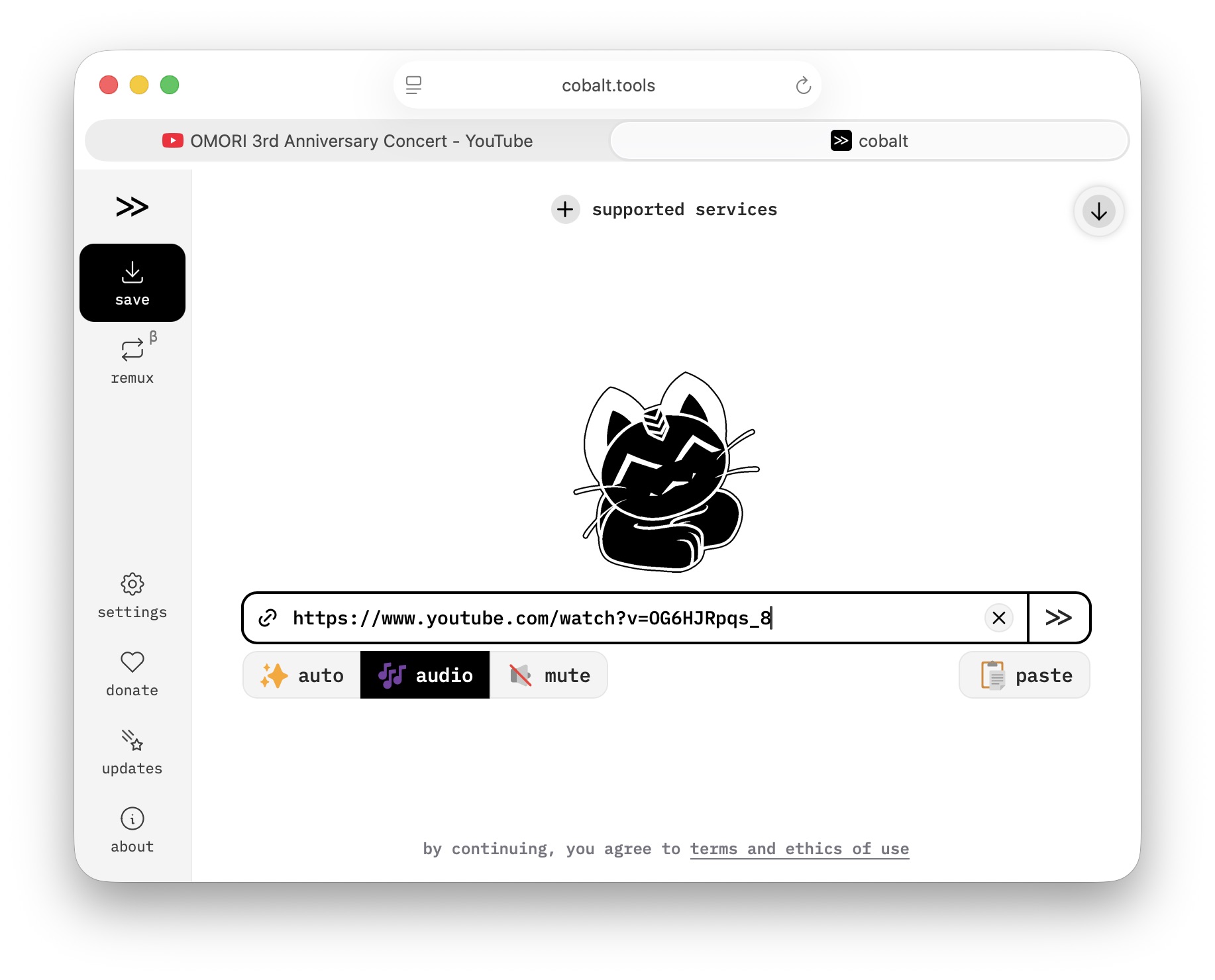 If you want to pull music from a YouTube video, you can use the free and convenient website cobalt.tools (or a video downloading app). On the cobalt.tools site, just click audio, paste in the YouTube URL, and click >>. After it processes, click Download to save the resulting MP3.
