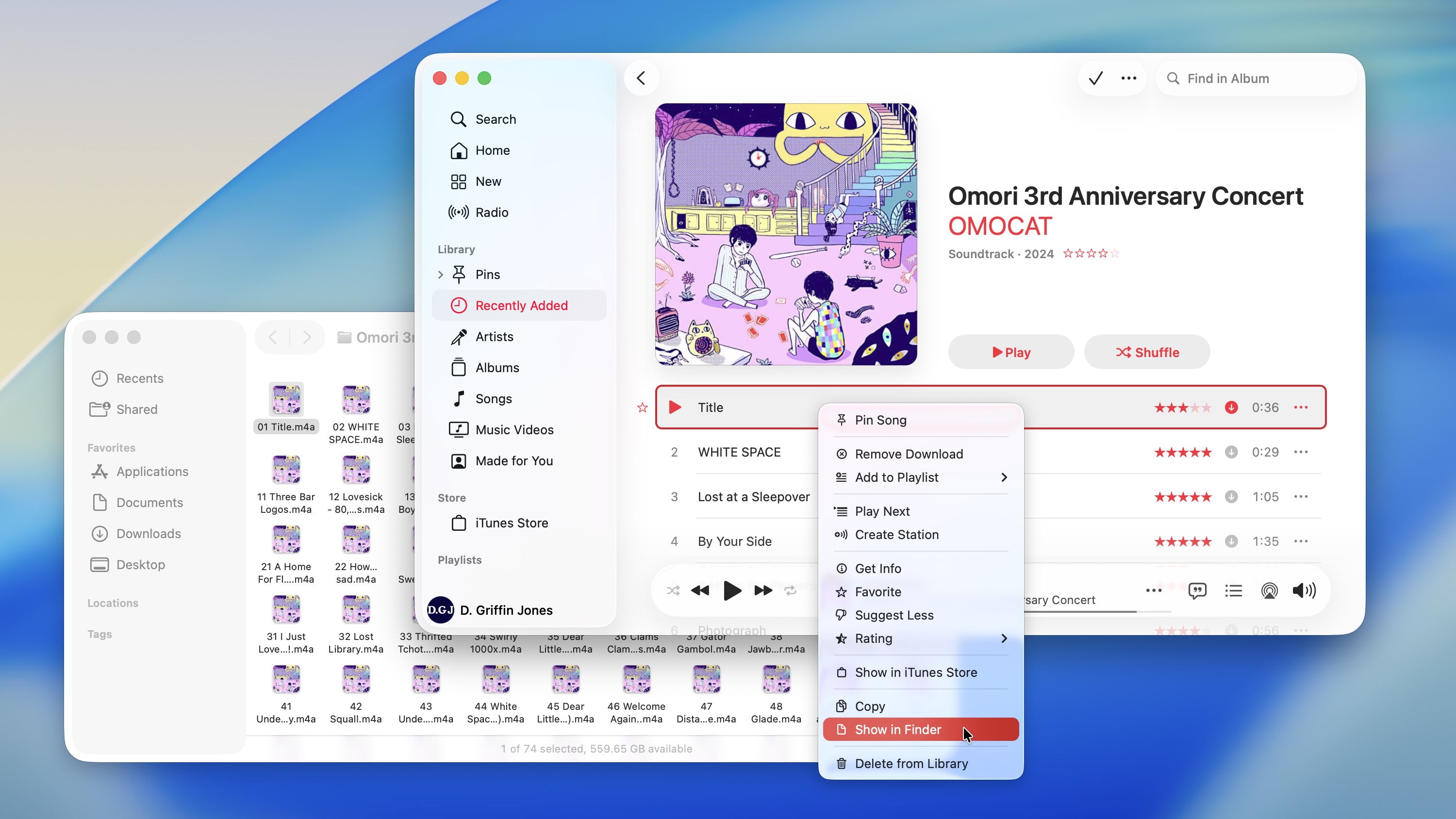 Right-click on any song in the album and click Show in Finder. That’ll take you to the folder with all the cleaned-up files. If you added album artwork, you’ll see that each of these files uses it as its thumbnail. You can easily identify these as the proper versions.