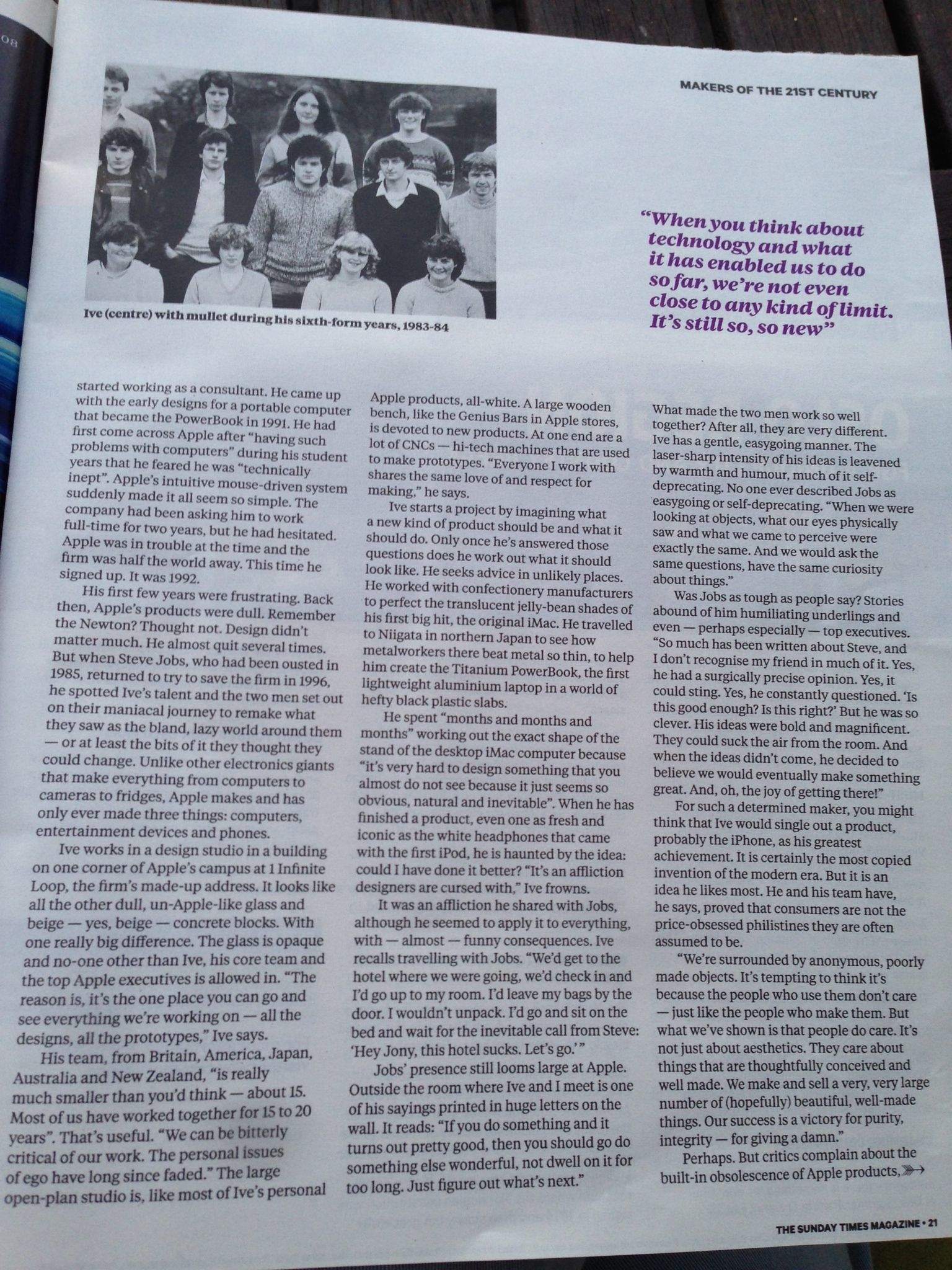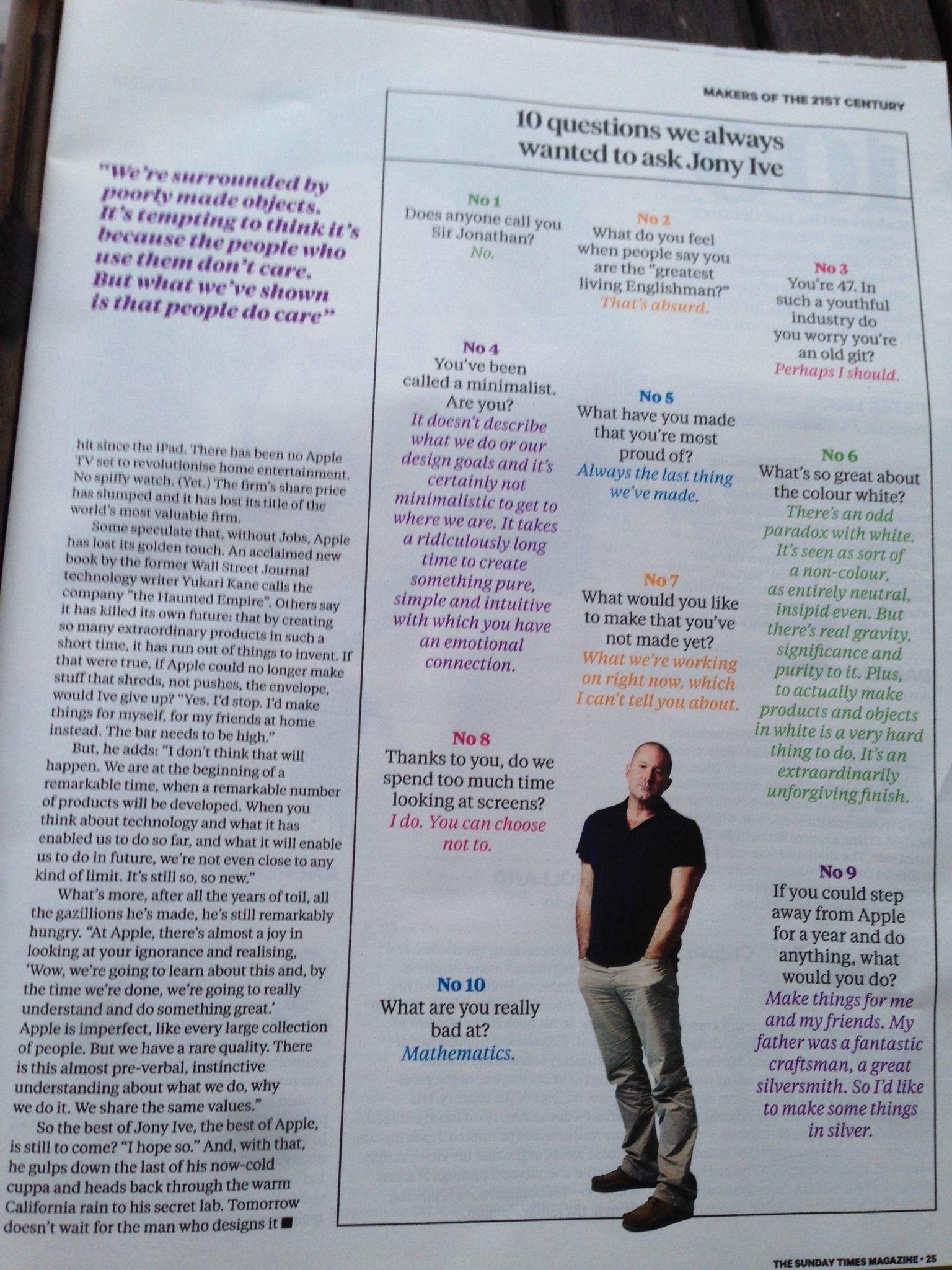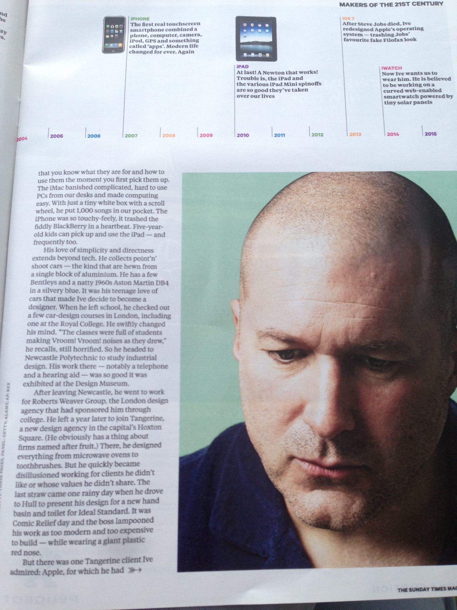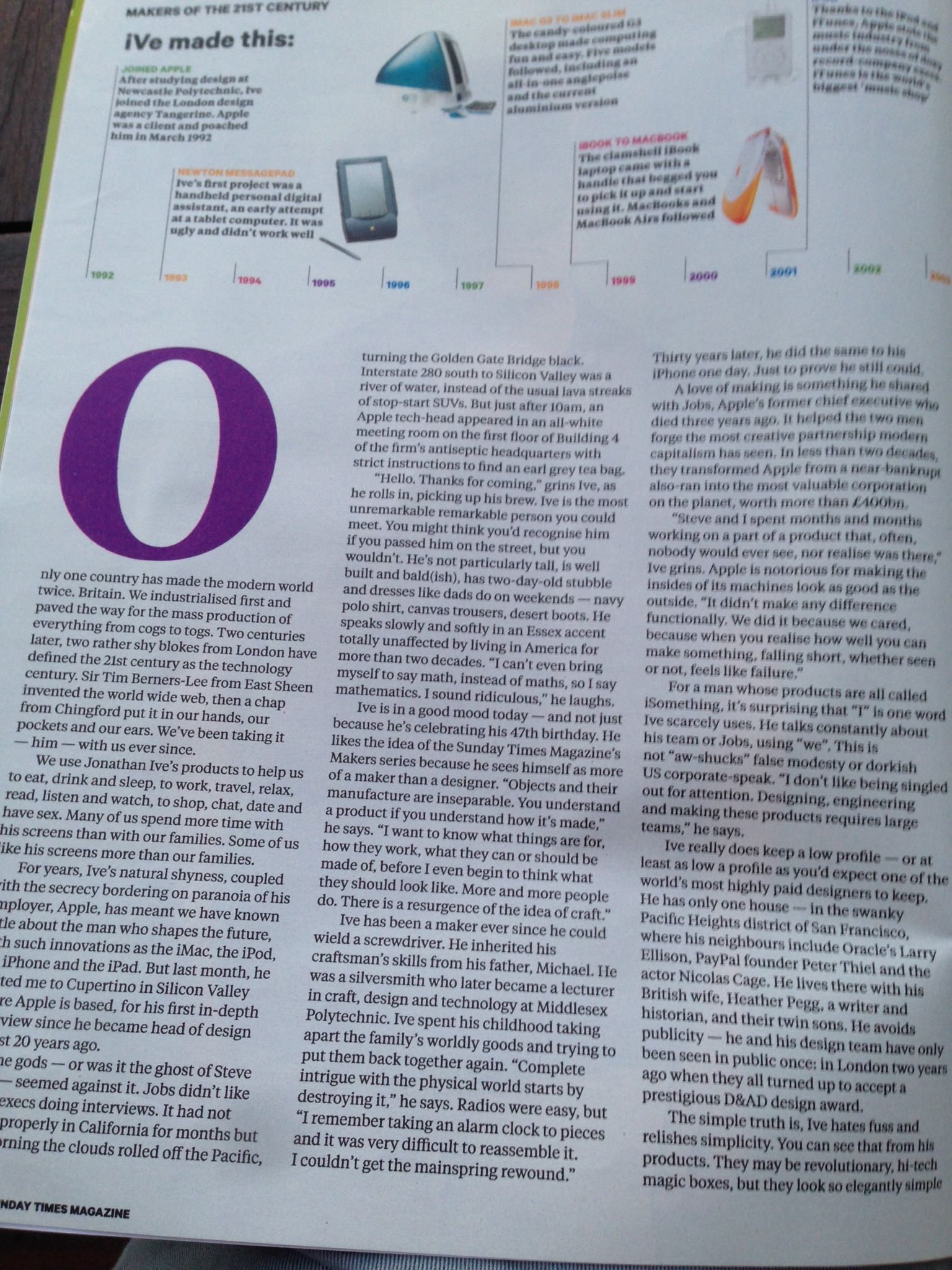 The UK’s Sunday Times has a long interview with Apple’s head designer Jony Ive in its Sunday Magazine (warning: paywall).