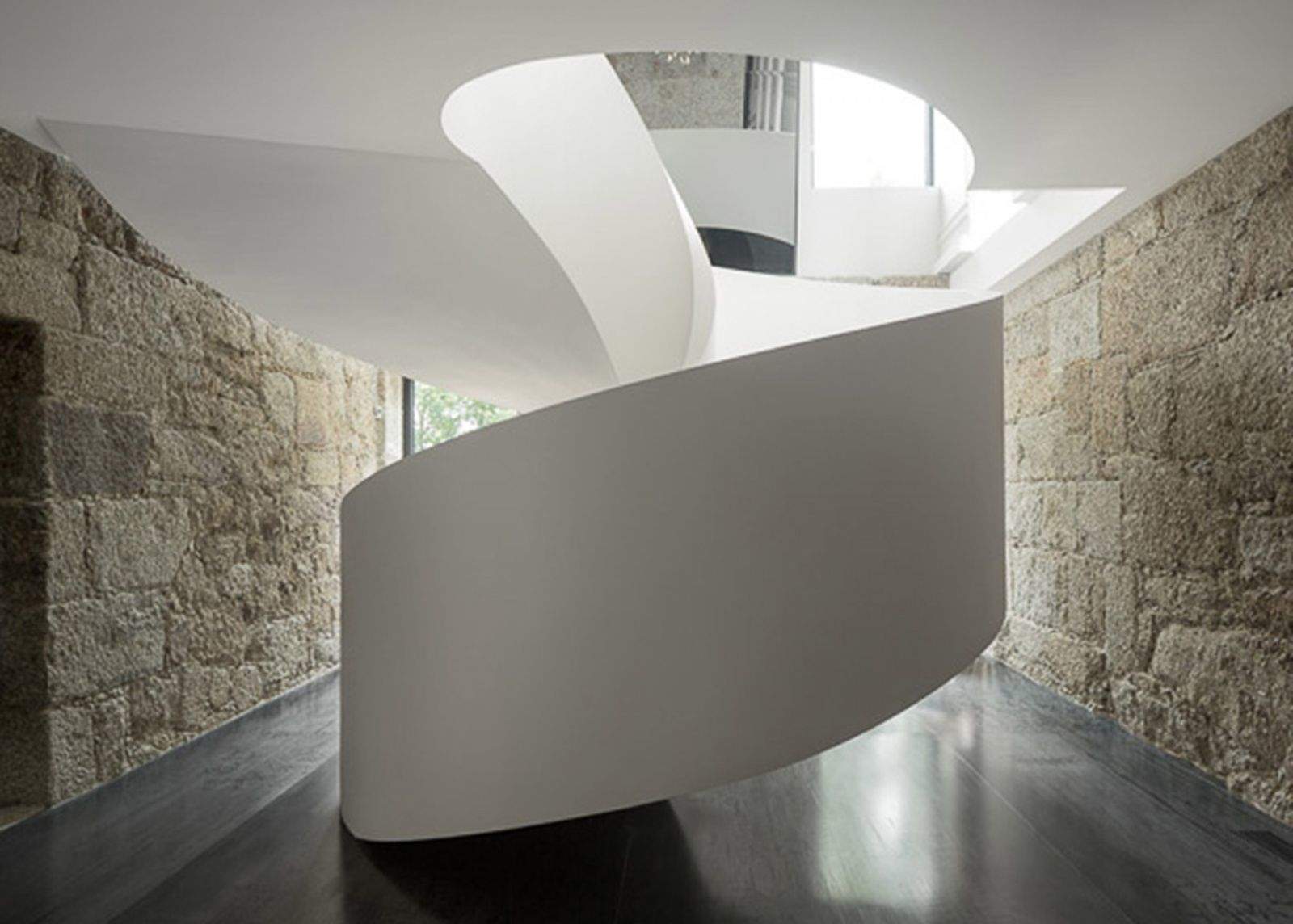 Old and new can live in harmony as architect Elisabete Saldanha displays with this white spiral staircase in a converted stone farmhouse in Portugal.