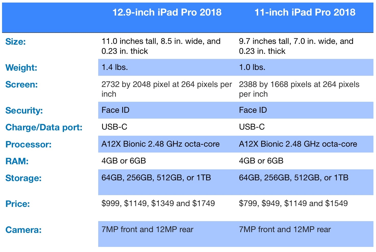 All 2018 iPad Pro specs