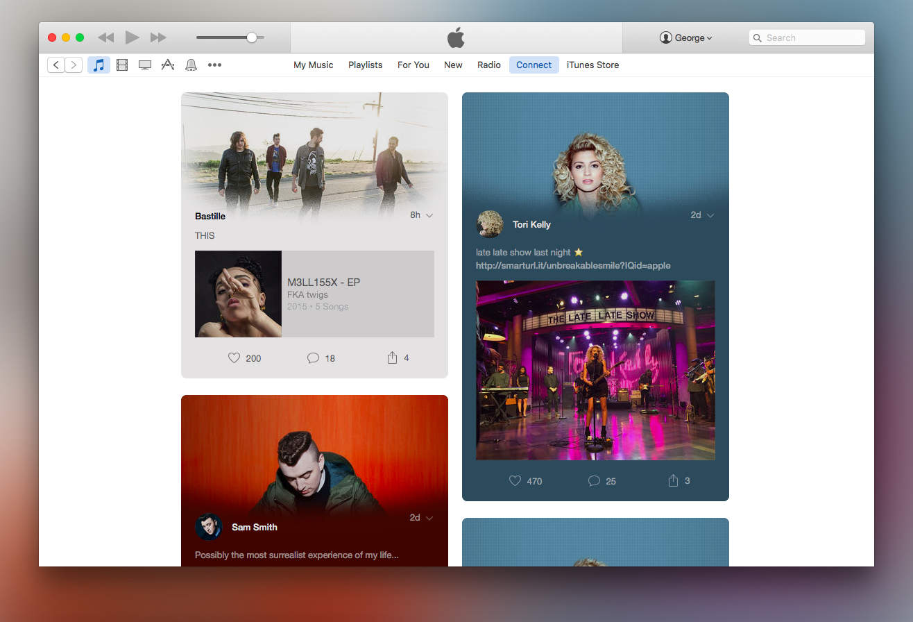 By far the feature I use the least in Apple Music is Connect, but it has a ton of potential. First of all, it currently looks like a boring Pinterest board in iTunes, except it doesn’t even fill the width of the app.