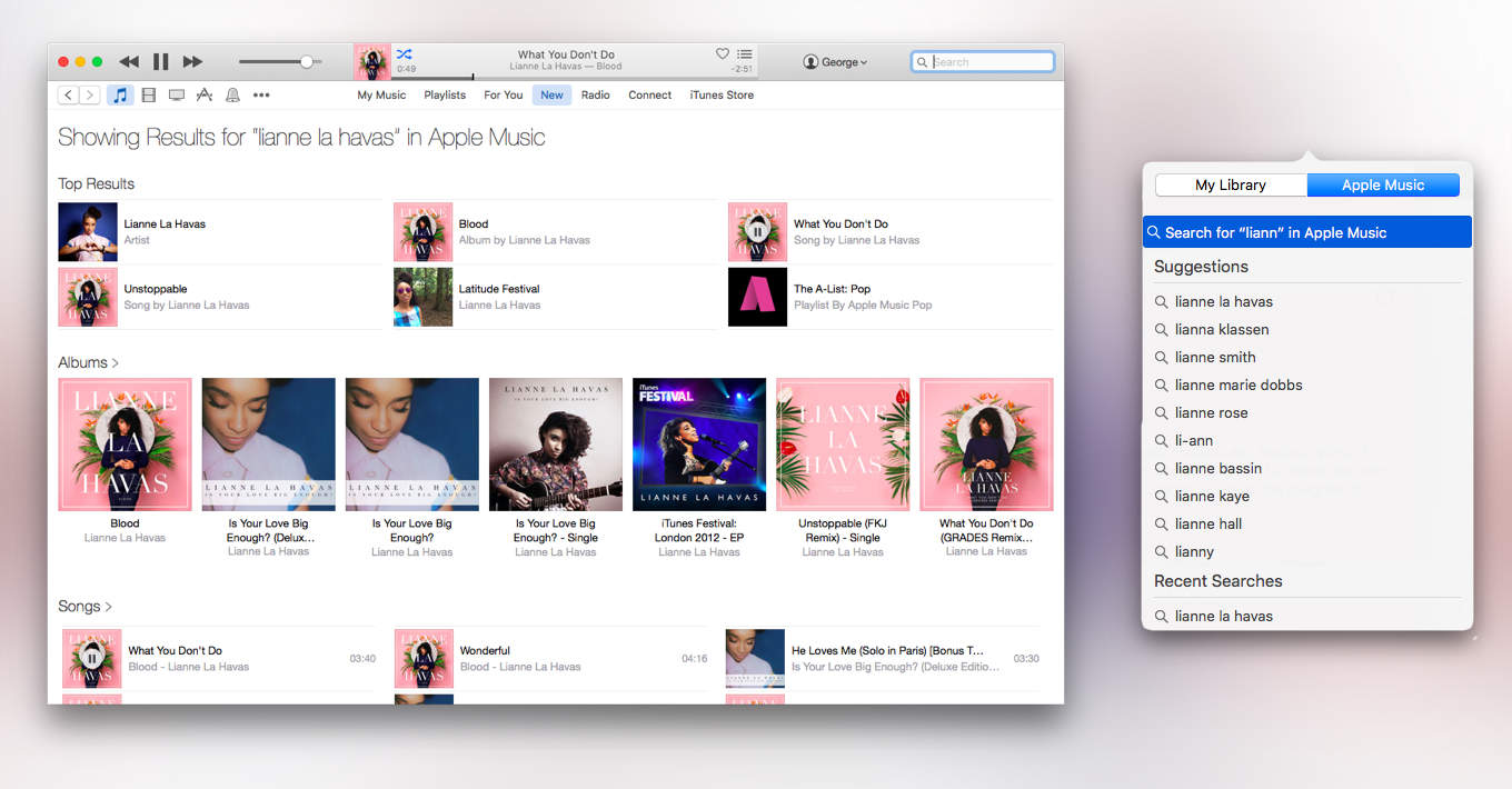 Artist and album pages look completely different on the services. Also, when I’m browsing the iTunes Store, a “Play in Apple Music” button would really come in handy next to the purchasing options.