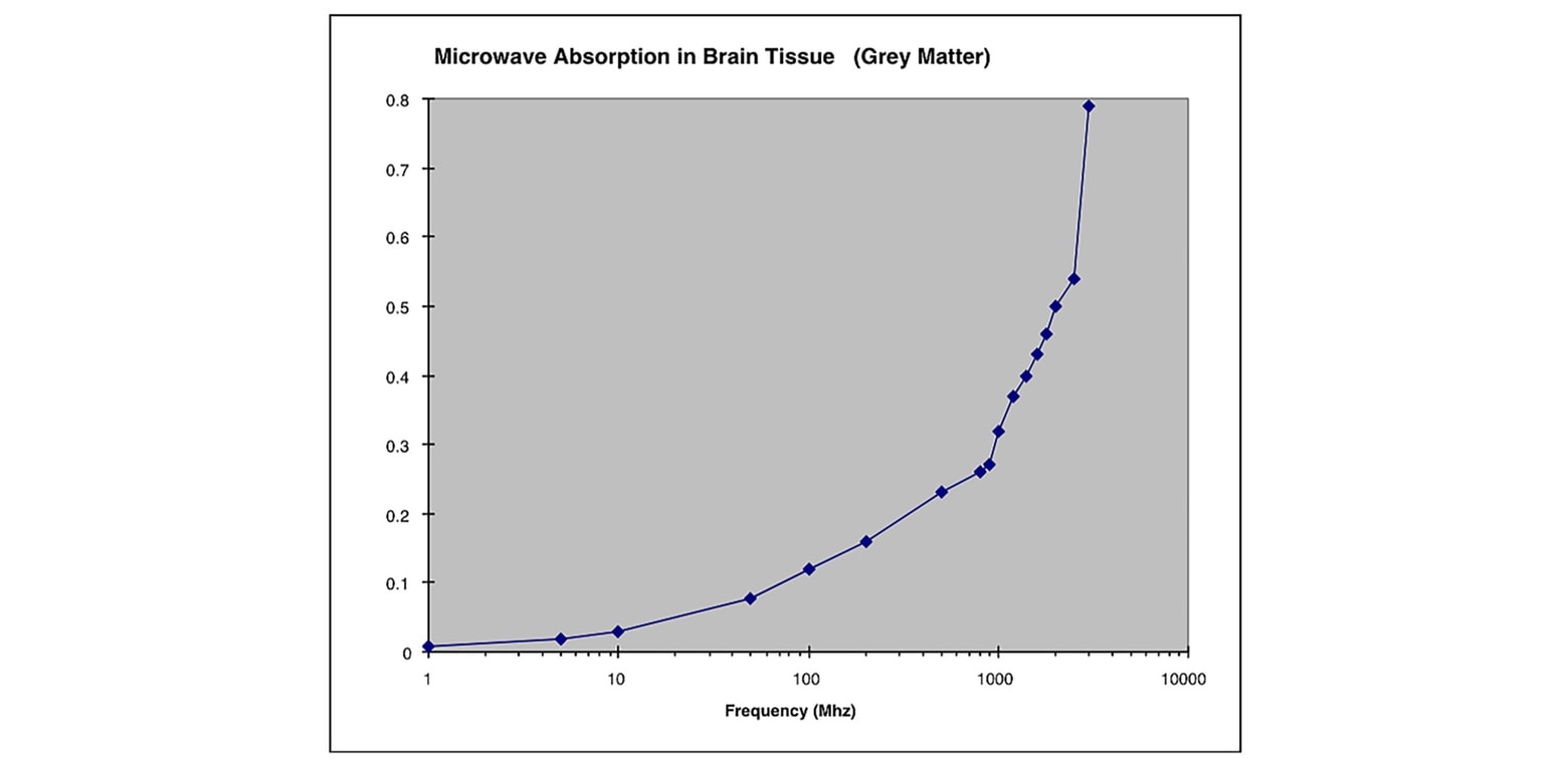 Curry’s report included a chart that must have scared the dickens out of them. It showed that the higher the frequency of the radio waves, the more they are absorbed by brain tissue.