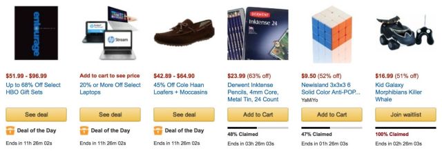 For the next eight days, Amazon will have some of the best deals on the internet. You’ll get up to 45% off on Samsung TVs, like its 40-inch Smart 1080p LED TV for $328 and 55-inch Curved Smart 4K Ultra HD LED TV for $1,298 (quote a mouthful). There will be a 50-inch Toshiba TV for $199, top of the line DSLRs with lens kits for $500, Kindle ebook discounts, deals on appliances, and yes, even 60% off over 100 different kinds of wines. Amazon is also great for buying dirt cheap Blue-rays, so keep an eye out for those.