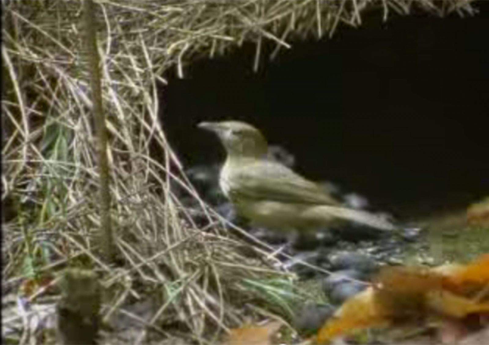 In Australia, Bowerbirds build elaborate homes with twig-thatched roofs and carefully arranged gifts on the outside in hopes a girl will come a-knocking.