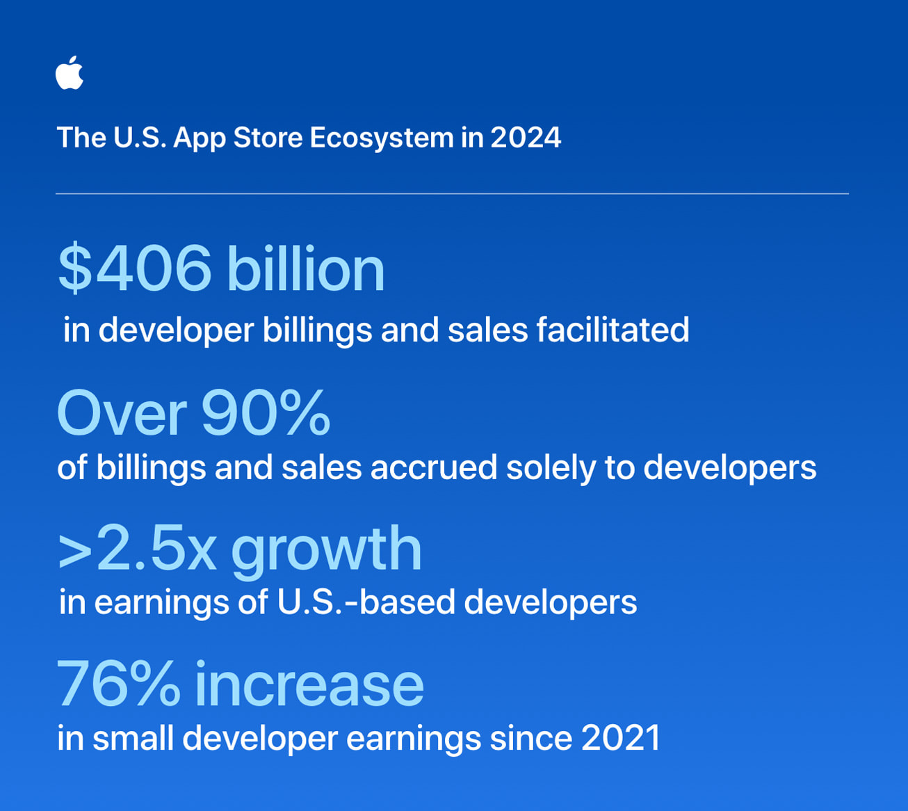 App Store sales growth: Over $406 billion in developer sales and billing in 2024