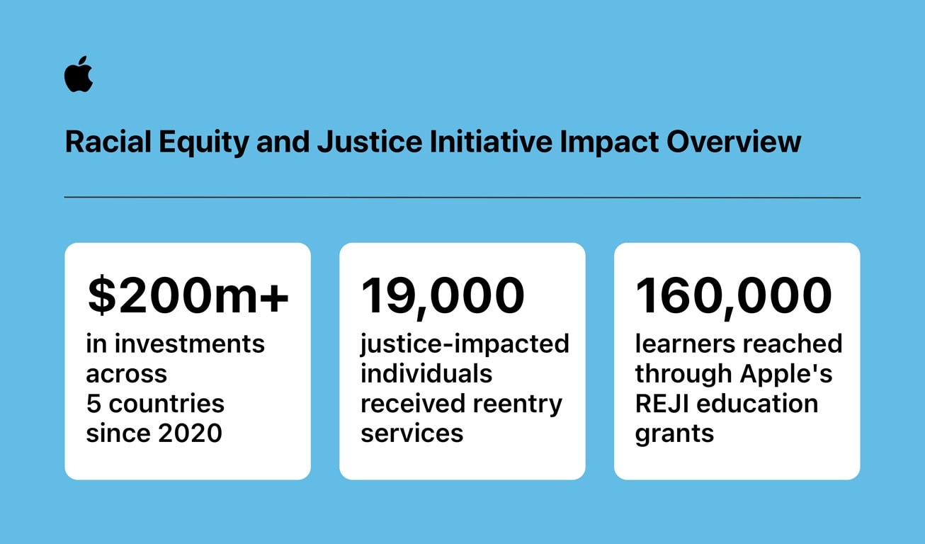 “We launched REJI at a critical inflection point for our country,” said Lisa Jackson, Apple’s vice president of Environment, Policy, and Social Initiatives. “We are resolved to keep building on the progress we’ve made to ensure equitable opportunity for Black and Brown communities across America and around the world.”