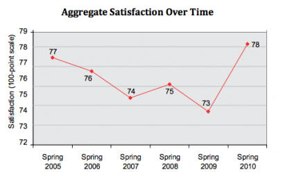 The survey by ForeSee Results noted Apple’s impressive showing came during a tough economic period. “Since so much of the financial downturn was out of their control, companies turned to those things they could improve, and now they are reaping the benefits,” Larry Freed, ForeSee CEO, said in a statement. Every point of increased consumer satisfaction equates to $89 million in higher sales, according to the company.