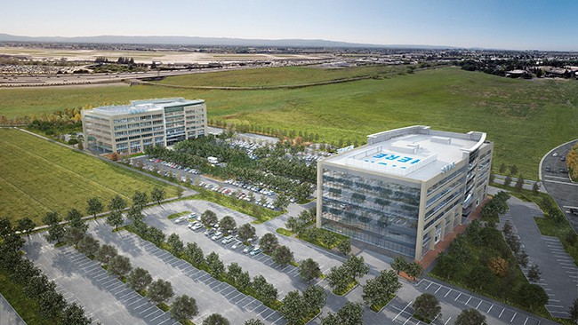 The new San Jose building is being marketed by Steelwave as ‘Tech Place on 101.’ It features a full-service cafe, fitness center, a running trail next to the Guadalupe River, and floor to ceiling glass with 360 degree views.