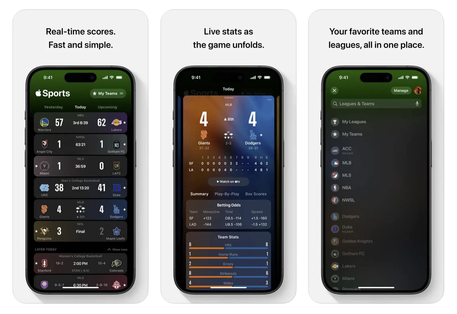 The Apple Sports app launched in February, giving fans scores and stats for a host of pro leagues. Monday’s baseball and soccer updates to the Apple Sports app are just par for the course. It is expected to grow over time, adding more sports, leagues and related data. Since launched, it added WNBA women’s basketball and some international soccer leagues.