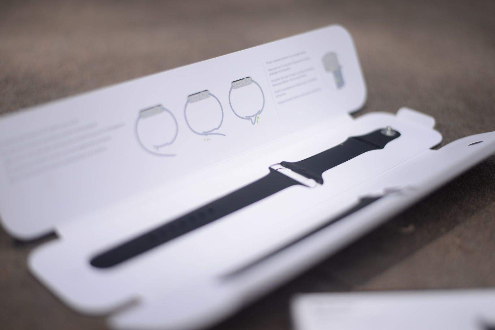 The Apple Watch band box is super-thin, especially compared to the giant plastic box the Apple Watch ships in. Once you open up the box, the package is divided into three panels: an instructional panel at the top, the Apple Watch band with the medium/large size in the middle and the extra small/medium band inside the bottom.