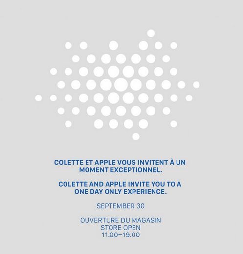 The first public showing of the Apple Watch might take place tomorrow, reports MacPlus, which spotted an announcement from the Parisian fashion boutique Colette (which sells a ton of fashionable watches), advertising a one day only experience in partnership with Apple.