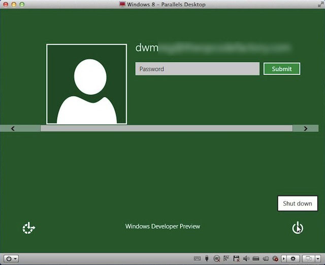 You can shutdown Windows 8 from the login screen.After you enter your password Windows 8 welcomes you.This is the Metro User Interface it replaces (kind of) the start menu and this is the part that made me a little queasy.