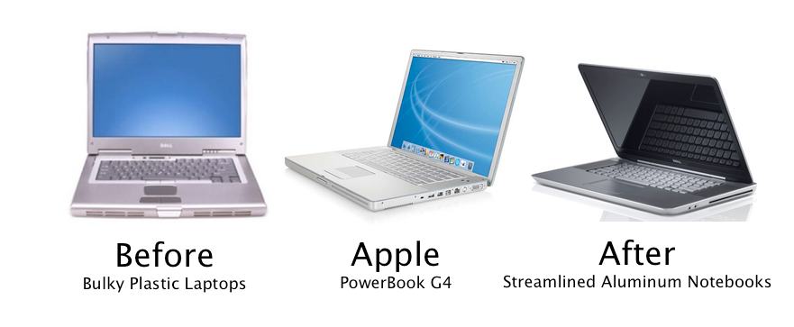 Remember how ugly laptops used to be? Bulky plastic behemoths that did the job, sure, but looked just terrible, and were fragile to boot. Apple’s shift to using aluminum to make their laptops’ chassises not only made their notebooks sturdier, they made them sexier. Laptops became fashion accessories for the first time, and Apple began to cultivate an aura of prestige, minimalism and class. The advantages of Apple’s approach to laptop designs only continued over time as Cupertino adopted a unibody construction system that allowed them to carve a MacBook’s case out of a single block of aluminum, making them run cooler and be less likely to break than before, not to mention amp the sex appeal further. Look around at Windows notebooks today and you can see Apple’s influence: while Cupertino still leads in design and sex appeal, Apple proved to notebook makers that they could no longer ignore the aesthetics of their devices.