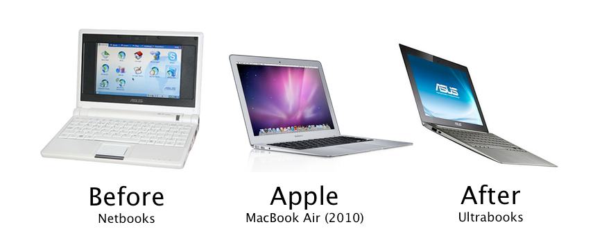 In releasing the 2010 MacBook Air, Apple basically killed netbooks overnight. Now the competition is only talking about ultrabooks, which are just clones of the MacBook Air. Even so, the competition is finding that it just isn’t easy to undercut Apple on price, thanks to Cupertino’s manufacturing clout. It’s going to take them awhile to catch up.