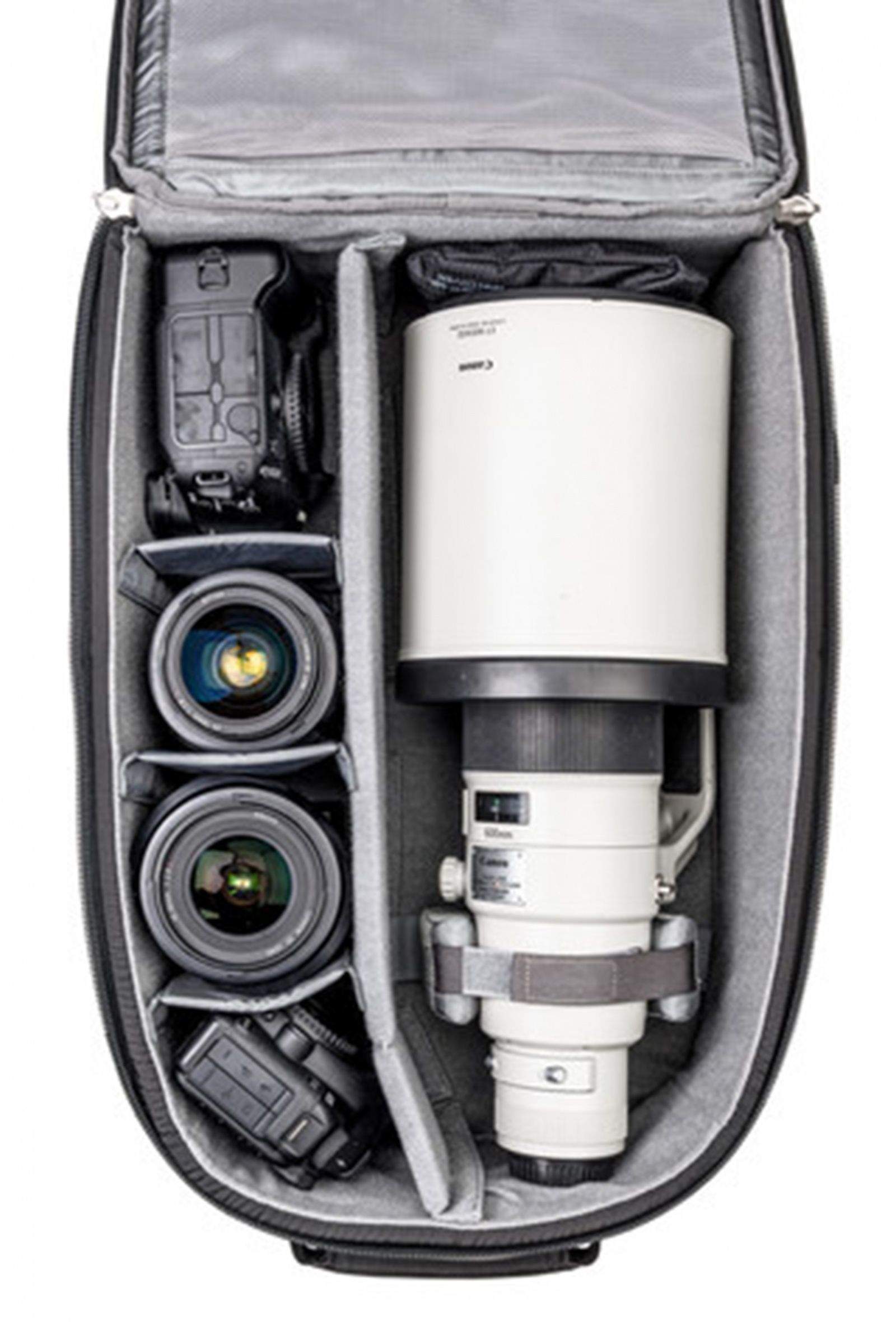 The FirstLight 20L ($230) holds a standard DSLR, four to six zoom lenses and could carry a 300 mm f/2.8 lens. The 30L ($280) holds a camera, four to six lenses and a slightly bigger telephoto, a 500 mm f/4 or a 400 mm /.2.8. The 40L ($330) can hold two DSLRs, six to eight lenses, a couple of flashes and that hefty 600 mm lens.