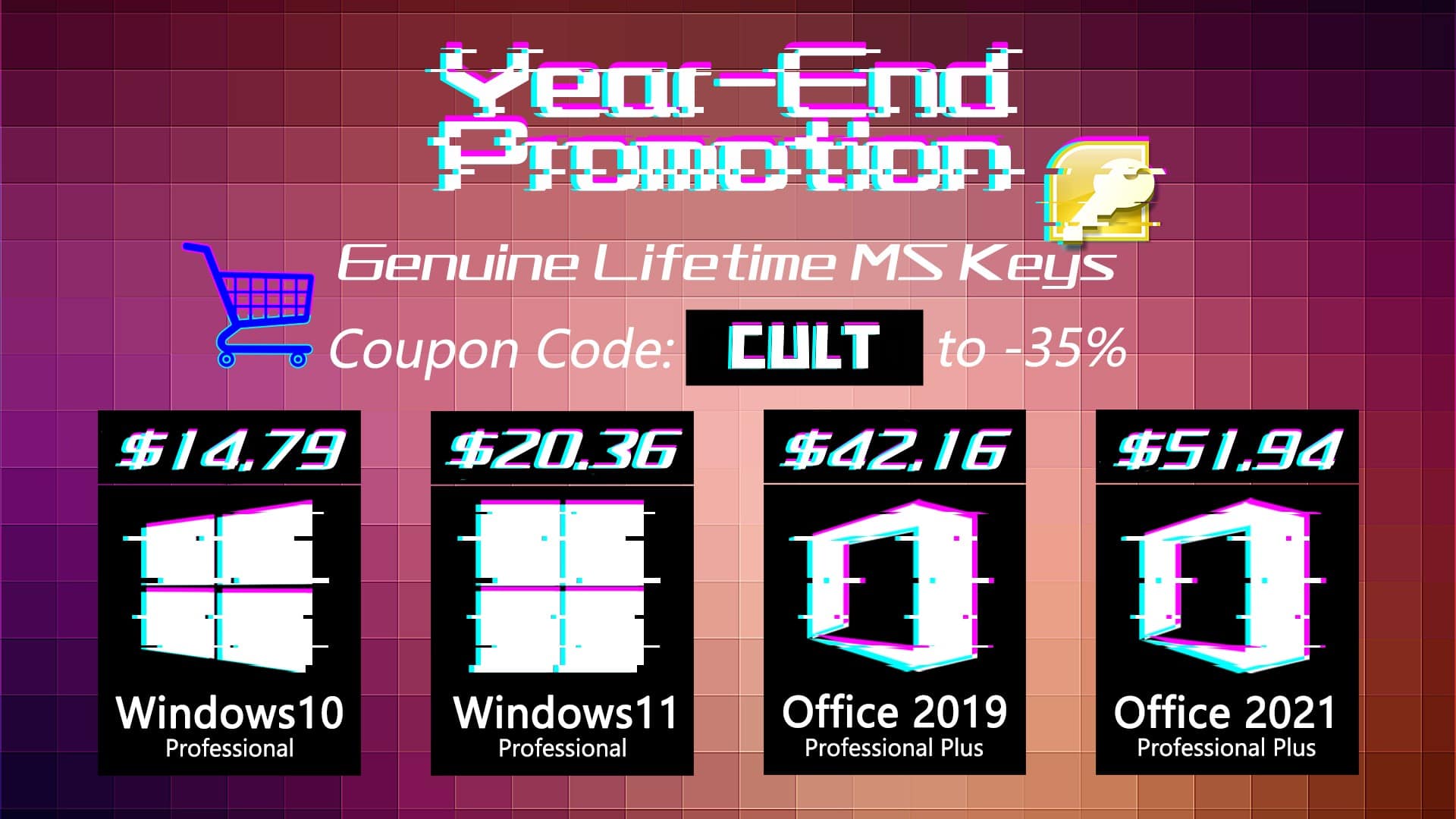 In the year-end promotion, you can take 35% off by using the super-discount code CULT at CDKeylord.com when purchasing any Microsoft Windows and Office keys. Check out these deals!