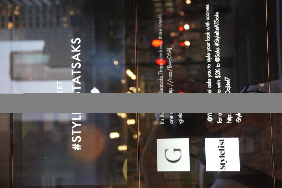 To commemorate the redesign of Stylelist.com, AOL commissioned Gin Lan to create this amazing display at Sak’s Fifth Avenue store featuring 64 iPad 2s, flanked on both sides by nine 27-inch Apple cinema displays… all streaming live content from Stylelist’s site and its official Twitter feed.