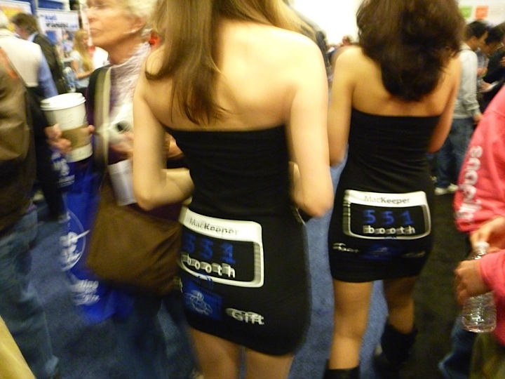 Above: Cute girls in short tube dresses. Good thing are weather here is unseasonably warm! They are promoting MacKeeper and boy did they get a lot of attention!