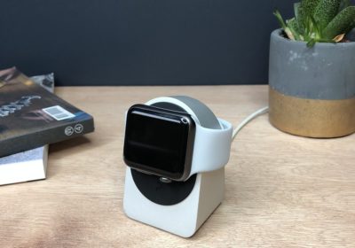 Precision-machined aluminum charging stand. Minimalist, gorgeous design made from a solid, single piece of anodized aluminum. The base is infused with a solid chunk of copper for added weight and stability. Check out our full review of this modern charging stand for Apple Watch.