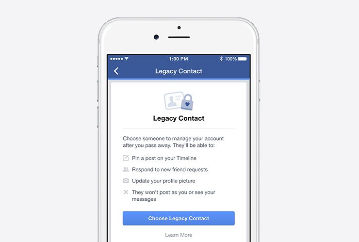 Today Facebook revealed that its new Legacy Contact feature will memorialize your account when you die and bestow ownership to the person of your choosing. Legacy Contacts will be able to write a post to display at the top of your memorialized Timeline, as well as respond to friend requests and update your profile photo.