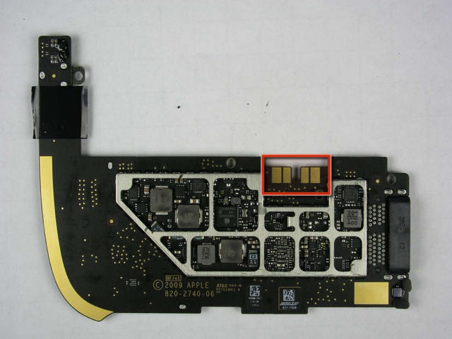 * It looks like there is a LOT of epoxy holding these chips down to the board. More than we’ve seen before— Apple is really serious about durability on this thing.