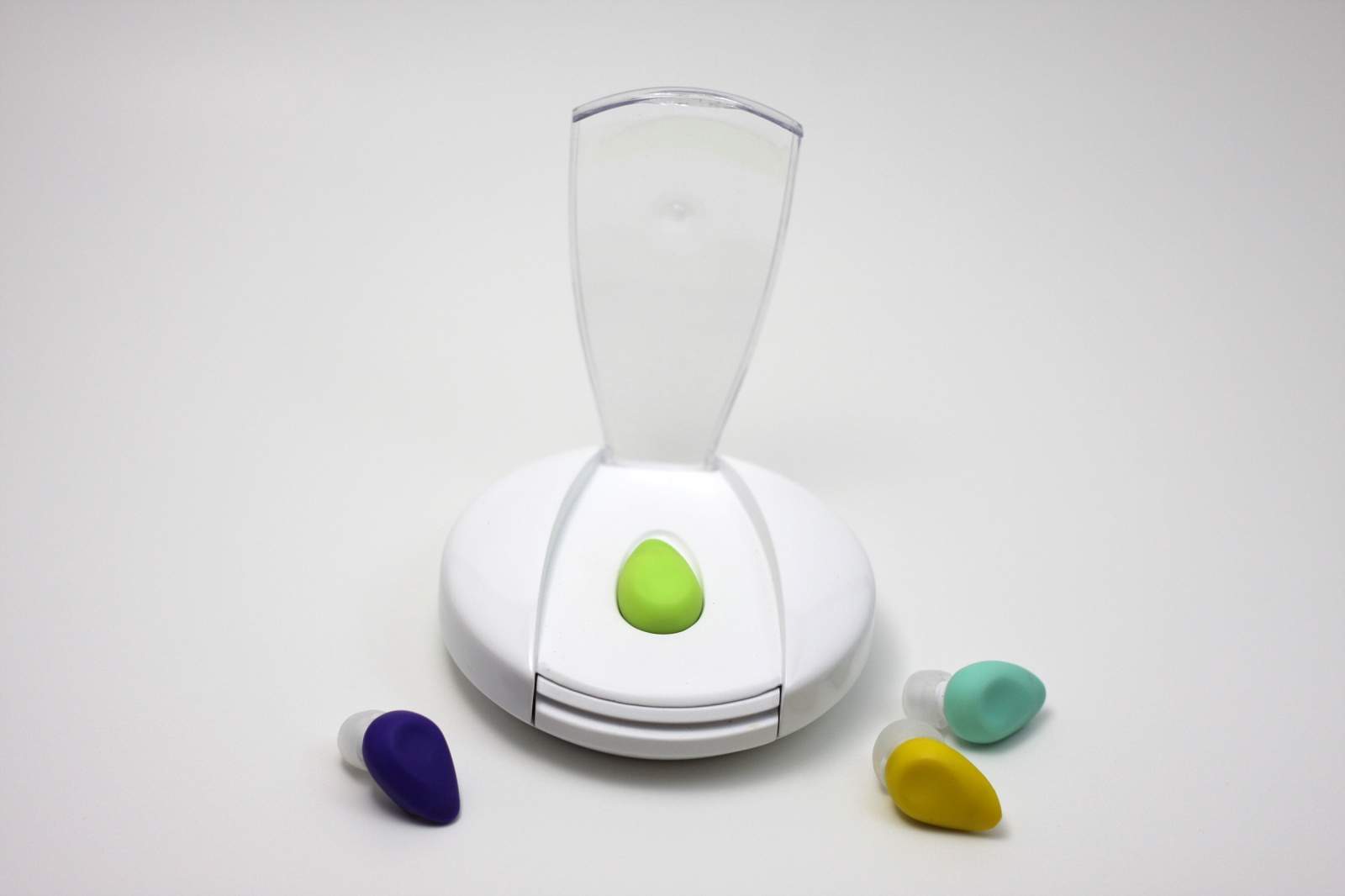 The ear piece comes in three colors – light green, sea foam and violet – and is currently available for a pledge of $99.
