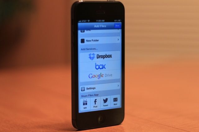 Upon launching Files App for the first time, you’ll be greeted with a message telling you how to add files. From there, you can bring in countless documents, photos, videos, spreadsheets- anything, from a wide variety of different sources. You can connect your Dropbox, Google Drive, and Box accounts as well for access to your files stored in the cloud. Tapping on any file located within any of these destinations immediately begins downloading it to your file “bin.”