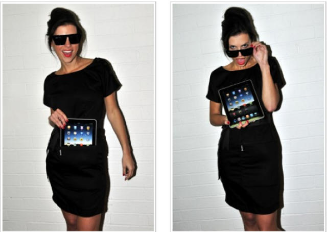The iPad is an equal opportunity for ways not to wear it well: case in point, this sleek black satin dress with the kangaroo pouch.