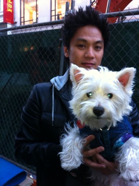 Oliver the dog waited in line for 8 hours with one bathroom break. His owner said “no,” when I asked him to change his name to “Apple.”