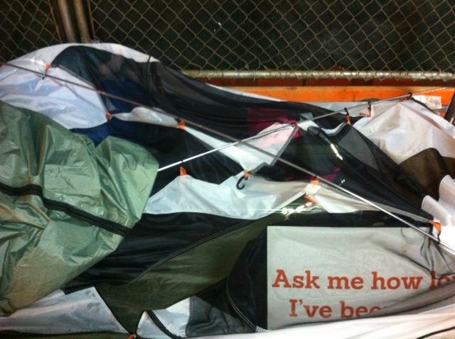 TaskRabbit has been bringing him burritos and other sustenance. Hufnagel actually hired another TaskRabbit yesterday to hold his line in place while he got a shower.