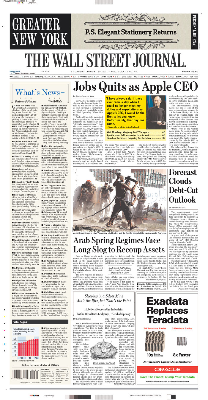 Front Pages Around The World React After Steve Jobs Resigns From Apple [Gallery]
