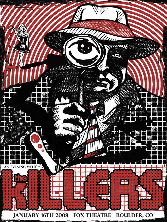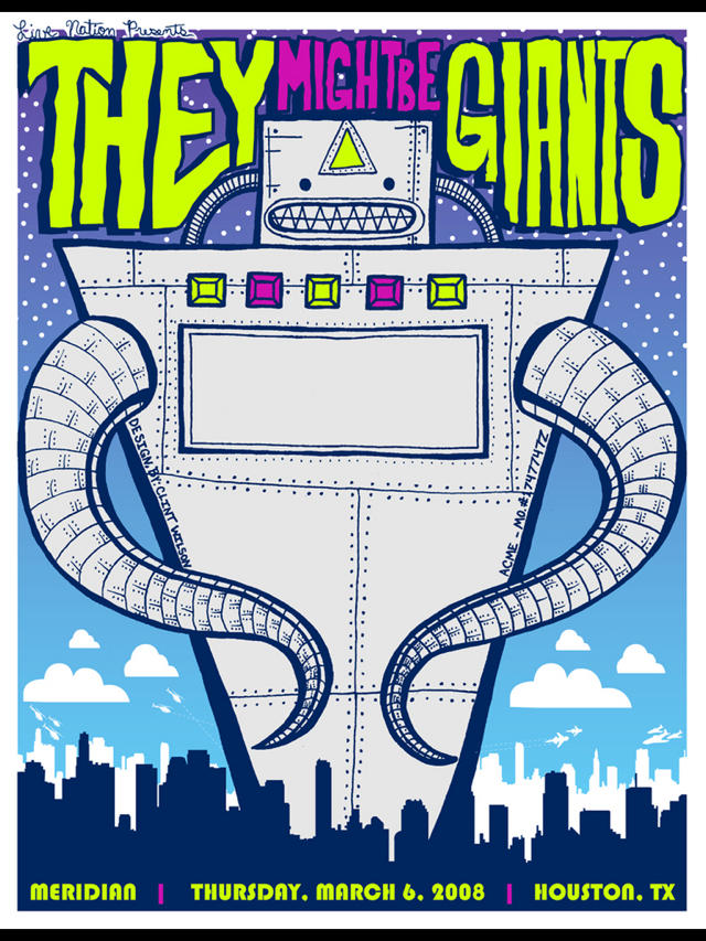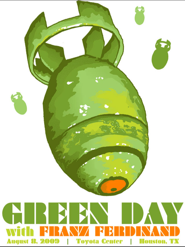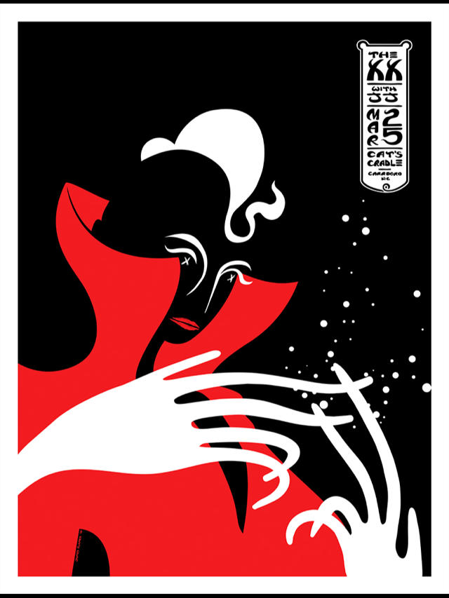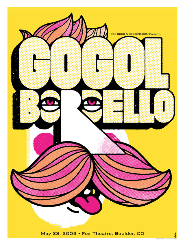 Other designers featured in the Rock Show lineup include Jay Vollmar, who did the Gogol Bordello poster in the gallery here, Clint Wilson, who did They Might Be Giants and Green Day, and James Flames, who did The XX.