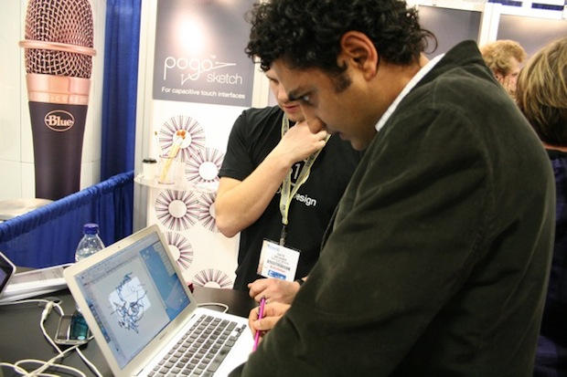 Ten One Design (another Macworld bes-in-show winner) with the Pogo Sketch. Turns your Macbook into a tablet for any drawing application.