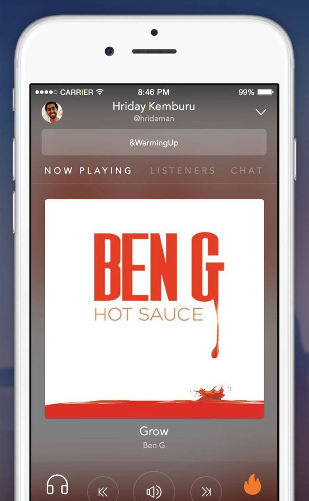 A Geekin user can be in the middle of a song on their playlist and friends can join in live, listening and messaging back and forth. The app also has the potential for musicians to communicate directly to fans as they invite followers to listen in on their favorite songs.